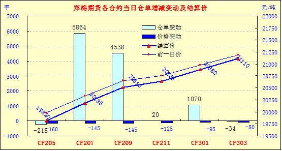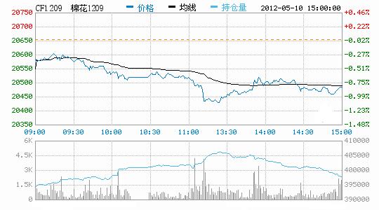 5月10日鄭棉期貨增倉下跌,再創(chuàng)新低。今日鄭棉CF1209合約低開,早在空頭賣盤打壓下震蕩走低,午間加速下滑,午后空頭短線回補(bǔ)支撐期價(jià)脫離低點(diǎn),日線形成陰線,主要合約成交量放大,持倉量增加。CF1209合約日成交158092手,日增倉4539手,終盤持倉量398204手;CF1301合約日成交26118手,日增倉1070手,終盤持倉量98300手?;久媲闆r:根據(jù)農(nóng)發(fā)行規(guī)定5月底“雙結(jié)零”,從時(shí)間和價(jià)格上來說,拋貨的企業(yè)不多,只要通過商業(yè)銀行、企業(yè)或交易市場等質(zhì)押融資,及時(shí)歸還農(nóng)發(fā)行資金,部分棉企有信心和條件囤貨等待棉花市場7-8月份轉(zhuǎn)暖。棉副方面,外圍油脂現(xiàn)貨行情不佳,棉油、粕價(jià)格繼續(xù)下跌;棉籽貨源稀少,價(jià)格穩(wěn)中有跌。下游方面,多數(shù)紗廠庫存沒有得到緩解,市場需求不振,棉紡市場延續(xù)冷多熱少局面。