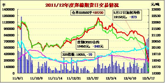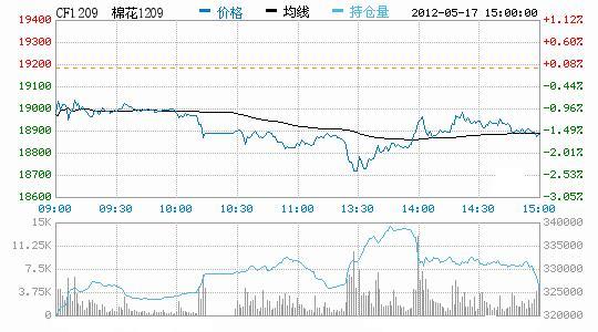 5月17日鄭棉期貨下探增倉,止跌反彈。今日鄭棉主要合約低開,早盤增量下滑后盤整,午后探低,盤中低位多頭買盤承壓期價(jià)回升,日線形成長下影線的陰線,主要合約成交量放大,持倉量增加。CF1209合約日成交483902手,日增倉10676手,終盤持倉量326508手;CF1301合約日成交265740手,日增倉12308手,終盤持倉量186386手?;久媲闆r:棉花電子盤反彈乏力再次走低,對現(xiàn)貨來說壓力看增,目前價(jià)位對下游企業(yè)存在一定吸引力,近期在順價(jià)銷售情況下皮棉成交有望增加。下游紗線行情仍在低位運(yùn)行,暫時(shí)表現(xiàn)平穩(wěn),銷售壓力不減。棉副產(chǎn)品行情繼續(xù)走低,外圍表現(xiàn)不利的情況下短期內(nèi)難有好轉(zhuǎn),廠家低價(jià)出貨意愿較強(qiáng),年度后期以回籠資金為先。