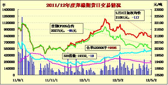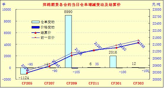 5月2日,勞動(dòng)節(jié)期間紐期下跌,鄭棉CF1209合約低開,早盤下探后在多頭買盤支撐下回升,此后橫向整理,盤中反彈受到空頭賣盤壓制,日線形成陽線星,主要合約成交量萎縮,持倉(cāng)量增加。CF1209合約日成交77304手,日增倉(cāng)8990手,終盤持倉(cāng)量386444手;CF1301合約日成交14002手,日增倉(cāng)2016手,終盤持倉(cāng)量86798手?;久媲闆r:隨著氣溫升高,江蘇鹽城缽育棉生長(zhǎng)環(huán)境良好,部分育株已呈兩葉一心,長(zhǎng)勢(shì)較往年有明顯優(yōu)勢(shì);河北大部分地區(qū)已播種完畢,早期播種的棉田已經(jīng)現(xiàn)苗,較去年植棉完成時(shí)間相當(dāng)。近幾日,商品棉撮合交易及鄭期盤面連續(xù)承壓下挫,再加上進(jìn)口棉增發(fā)100萬噸的傳聞等,給仍有囤棉的企業(yè)帶來很大沖擊。