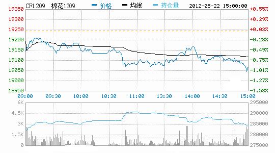 5月22日鄭棉期貨增倉下跌,遠月放量。今日鄭棉主要合約微幅高開,盤中在空頭增倉打壓下走低,日線形成小陰線,主力合約成交量萎縮,遠期合約成交量放大,持倉量增加。CF1209合約日成交155888手,日減倉3012,終盤持倉量284092手;CF1301合約日成交194196手,日增倉14810手,終盤持倉量210200手。基本面情況:上周五2012中國棉業(yè)高峰論壇在四川省成都市圓滿閉幕,多位領導、嘉賓對棉花市場行情進行了分析并且提出了一些對策,市場悲觀情緒暫時略有緩解。今日兩電子盤呈現(xiàn)漲勢,但能否延續(xù)反彈勢頭仍需關注。新疆方面,受多方因素影響,近幾日內(nèi)地棉花貿(mào)易企業(yè)和棉紡廠赴新疆棉區(qū)采購的熱情呈現(xiàn)逐漸恢復的勢頭。棉副方面,整體行情依然低迷,棉油、粕價格持續(xù)走低,成交并不理想;棉短絨需求清淡,報價穩(wěn)中有跌。