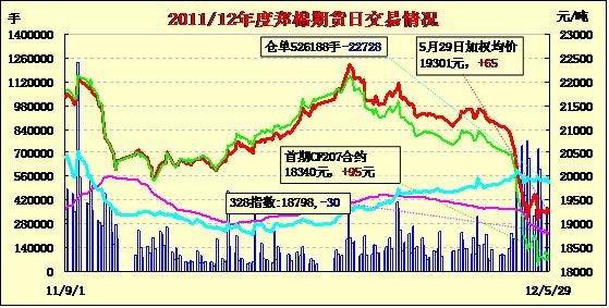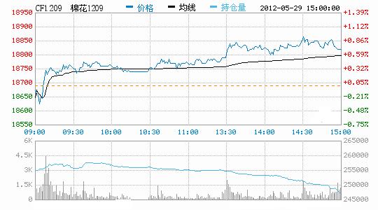 5月29日,鄭棉期貨減倉反彈,報收陽線。今日鄭棉主要合約平開,早盤在空頭回補推動下回升盤整,午后空頭繼續(xù)回補支撐期價反彈,尾盤在多頭平倉的壓制下調(diào)整,日線形成陽線,主要合約成交量萎縮,持倉量減少。CF1209合約日成交114312手,日減倉7202手,終盤持倉量247376手;CF1301合約日成交220566手,日減倉17020手,終盤持倉量220566手?;久媲闆r:現(xiàn)貨銷售冷清,皮棉價格繼續(xù)小幅下跌,行情疲軟不堪,市場恐慌情緒漸增。在此行情下,政府公布的棉花宏觀調(diào)控政策的目標是穩(wěn)定市場,這個導向不會改變,在市場走低的形勢下,政府絕不會打壓市場,棉花臨時收儲政策仍會堅定不移地執(zhí)行下去。棉副方面,棉籽暫時維穩(wěn),購銷清淡;棉油、粕外圍技術性反彈,短期內(nèi)壓力減輕。下游方面,全棉紗市場行情總體清淡疲弱態(tài)勢依舊,市場觀望濃重,鮮有成交;紗廠繼續(xù)減產(chǎn),停產(chǎn)歇業(yè)也不在少數(shù)。