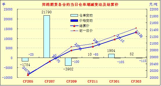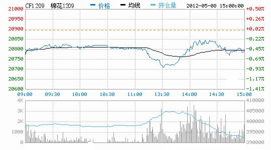 5月8日,今日鄭棉CF1209合約低開,早盤橫向整理,午間在空頭賣盤打壓下走低,午后空頭集中回補推動期價回升,交投重心再次上移至午前水平,日線形成陽線星,主要合約成交量增加,持倉量先增后減。CF1209合約日成交157356手,日減倉3902手,終盤持倉量392476手;CF1301合約日成交31122手,日增倉1904手,終盤持倉量95766手?;久媲闆r:由于皮棉現(xiàn)貨價格及成交均不理想,市場悲觀氛圍較為濃郁。據(jù)了解,北疆、南疆一些無條碼大包棉的報價已跌至18800-19000元/噸,但內(nèi)地紡企和貿(mào)易公司對此仍沒有多大興趣,主要原因是無法生成撮合、期貨倉單,又無法通過鐵路運輸出疆,汽運成本又太高。棉副方面,棉籽、棉油、棉短絨價格繼續(xù)小幅下滑;棉粕價格維穩(wěn);棉殼價格穩(wěn)中有降。下游方面,全棉紗市場行情所有企穩(wěn),但總體改觀不大,市場依然信心不足,多持觀望心態(tài)。