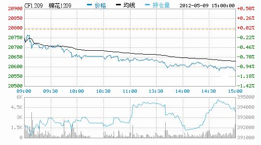 5月9日,今日鄭棉CF1209合約低開,盤中在空頭賣盤打壓下震蕩走低,午后空頭短線回補(bǔ)支撐期價(jià)弱市盤整,終盤收于日低,日線形成低開實(shí)體陰線,主要合約成交量萎縮,持倉量增加。CF1209合約日成交120026手,日減倉1190手,終盤持倉量393666手;CF1301合約日成交26728手,日增倉1464手,終盤持倉量97230手。基本面情況:隨著5月中旬至少增發(fā)100萬噸滑準(zhǔn)關(guān)稅棉花進(jìn)口配額的傳聞越炒越熱,多數(shù)紡企關(guān)注外棉的程度遠(yuǎn)遠(yuǎn)大于地產(chǎn)棉,現(xiàn)貨成交也較為冷清。棉副方面,棉籽價(jià)格暫時(shí)止跌;棉油下跌之勢(shì)暫緩;棉粕穩(wěn)中漸弱;棉短絨價(jià)格穩(wěn)定。下游方面,紗線銷售不暢,沒有主動(dòng)批量采購棉花,全棉紗需求批量依舊偏低,價(jià)格僵持狀態(tài)。
