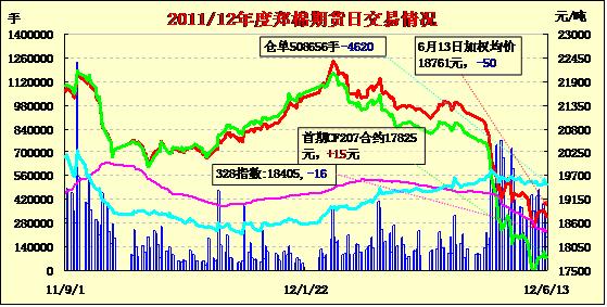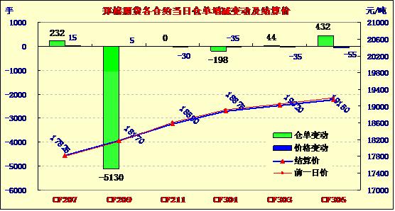 6月13日,鄭棉主要合約平開,近期合約在多頭平倉的壓力下走低,遠期合約受空頭賣盤打壓下滑,午后空頭全線回補,支撐期價反彈,日線形成小陰線,日內成交量萎縮,持倉量減少。CF1209合約日成交31624手,日減倉5114手,終盤持倉量159854手;CF1301合約日成交277144手,日減倉198手,終盤持倉量277144手。基本面情況:由于棉市行情疲軟依舊,兩電子盤低位震蕩,并且價格已經低于現(xiàn)貨價格。部分棉花企業(yè)將目光轉向了倉單市場,但由于市場不確定因素較多,也不敢放量購買。新疆方面,新疆棉的報價整體平穩(wěn),但棉花買賣雙方短期陷入僵持階段。棉副方面,產品行情漲跌不一,棉粕、棉殼報價有所回暖;棉油行情暫未有轉強跡象;棉短絨報價則繼續(xù)走低。