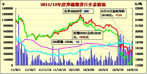 6月15日,鄭棉主要合約高開,早盤沖高后橫向整理,午后向下調(diào)整,尾盤在空頭回補與多頭買盤推動下上行,日線形成陽線,日內(nèi)成交量萎縮,持倉量變化不大。CF1209合約日成交71422手,日增倉256手,終盤持倉量151778手;CF1301合約日成交475728手,日減倉746手,終盤持倉量271668手?;久媲闆r:面對如今棉市疲軟的形勢,部分棉企則認為棉價將反彈,原因是越臨近新棉上市市面上流通的皮棉就越緊張,而且國家也不會打壓棉價;另一部分棉企則認為國內(nèi)外經(jīng)濟環(huán)境不景氣,出口受阻、消費下降等原因致使棉價難有起色。棉副方面,進入后期以來,整體行情延續(xù)弱勢,外圍維持油弱粕強的格局;棉短絨行情持續(xù)低迷,價格下跌。