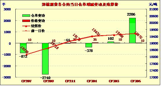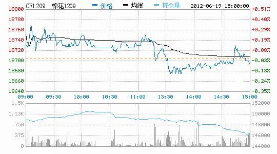 6月19日,鄭棉主要合約高開,早盤增倉橫向整理,午間在多頭平倉和空頭賣盤打壓下走低,午后重心下移震蕩,日線形成小陰線,日內(nèi)成交量變化不大,持倉量減少。CF1209合約日成交33010手,日減倉2740手,終盤持倉量146358手;CF1301合約日成交261156手,日減倉378手,終盤持倉量282370手。基本面情況:部分有存貨的棉企銷貨難,不銷更難。紡企前景仍無改觀,訂單少、資金不足仍困擾紡企前行。棉副方面,棉籽報價穩(wěn)定;短期內(nèi)油弱粕強格局難打破;棉短絨價格略有上漲,行情或有好轉的跡象。下游方面,紗線總體價格雖然跌勢略為緩解,但行情依然弱勢難改,整個市場幾乎還是一片冷清和頹迷之勢。