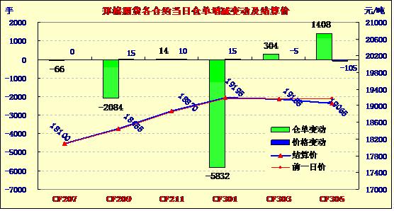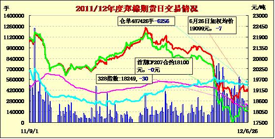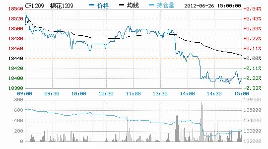6月26日,鄭棉主要合約平開(kāi),早盤(pán)在多頭平倉(cāng)壓制下滑,午間一度反彈,午后多頭平倉(cāng)盤(pán)再涌,期價(jià)隨之跳水觸及日低,尾盤(pán)弱市盤(pán)整,日線形成小陰線,日內(nèi)成交量萎縮,持倉(cāng)量減少。CF1209合約日成交21194手,日減倉(cāng)1972手,終盤(pán)持倉(cāng)量133026手;CF1301合約日成交157074手,日減倉(cāng)5832手,終盤(pán)持倉(cāng)量275798手?;久媲闆r:端午小長(zhǎng)假全國(guó)多數(shù)地區(qū)經(jīng)歷了降雨,有利于緩解北方高溫天氣及旱情。此次降雨對(duì)棉苗整體影響不大,生長(zhǎng)發(fā)育正常,部分地區(qū)現(xiàn)蕾加快。棉市行情依然冷清,部分地區(qū)現(xiàn)貨價(jià)格再次小幅下跌。因受下雨影響,導(dǎo)致現(xiàn)貨成交更加清淡,紡企詢價(jià)明顯減少。棉副方面,外圍油粕類上漲提振,整體利好于棉油、粕;棉短絨行情依然不振,價(jià)格小幅下跌;棉籽價(jià)格穩(wěn)定。