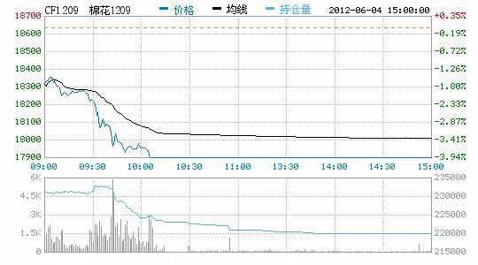 6月4日鄭棉期貨低開跌停,棄守近月。今日鄭棉主要合約跳空低開,近期合約多頭大量止損盤打壓期價(jià)下行,遠(yuǎn)期合約在空頭打壓下走低,終盤收跌停,日線形成低開陰線,主要合約成交量放大,持倉量近減遠(yuǎn)增。CF1209合約日成交101004手,日減倉11256手,終盤持倉量219988手;CF1301合約日成交330358手,日增倉14242手,終盤持倉量251468手?;久媲闆r:近期市場(chǎng)上皮棉報(bào)價(jià)仍呈現(xiàn)下滑趨勢(shì),而需求情況低迷未改,下游紡織企業(yè)堅(jiān)持低原料庫存,隨買隨用,因?yàn)閾?dān)心行情仍會(huì)下行;而市場(chǎng)供給量較為充足,銷售難使得報(bào)價(jià)趨低。今日電子盤棉花行情仍在下行,現(xiàn)貨壓力不減。由于油脂粕類行情近期弱勢(shì),棉副產(chǎn)品行情受限,棉籽貨少價(jià)格弱勢(shì)趨穩(wěn),成交量有限。棉市整體表現(xiàn)疲軟,不過下游企業(yè)如此低的原料庫存水平,對(duì)后期行情來說是潛在的利多因素,只待經(jīng)濟(jì)形勢(shì)轉(zhuǎn)好,需求復(fù)蘇的契機(jī)出現(xiàn)。