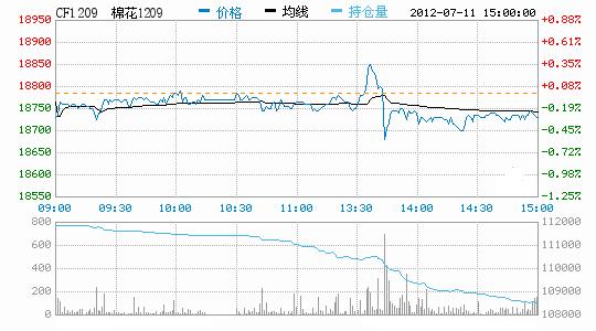 7月11日,鄭棉主要合約平開,早盤在空頭回補(bǔ)支撐下反彈,午后一度在多頭短線買盤推動(dòng)下上沖,隨后多頭逢高平倉(cāng)盤涌入,打壓期價(jià)反轉(zhuǎn)下滑,尾盤橫向震蕩,日線形成陰線,日內(nèi)成交量放量,持倉(cāng)量減少。CF1209合約日成交11786手,日減倉(cāng)3380手,終盤持倉(cāng)量108406手;CF1301合約日成交283760手,日減倉(cāng)18150手,終盤持倉(cāng)量281098手。