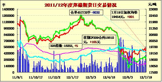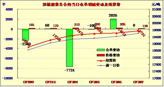 7月19日,鄭棉CF1301合約高開,早盤橫向整理,午間一度調(diào)整,午后在空頭集中回補支撐下回升,尾盤走強,日線形成小陽線,日內(nèi)成交量萎縮,持倉量減少。CF1301合約日成交142376手,日減倉7724手,終盤持倉量291710手;CF1305合約日成交11528手,日增倉2026手,終盤持倉量69326手。基本面情況:隨著新年度的臨近,部分企業(yè)已經(jīng)籌集到了資金,并完成了在新疆包廠收購的包場手續(xù),以備更好地收購新棉。棉副方面,棉副產(chǎn)品行情暫時維穩(wěn),外圍行情回調(diào)使得棉油、粕報價上調(diào)受到一定影響;棉短絨仍以弱勢為主。