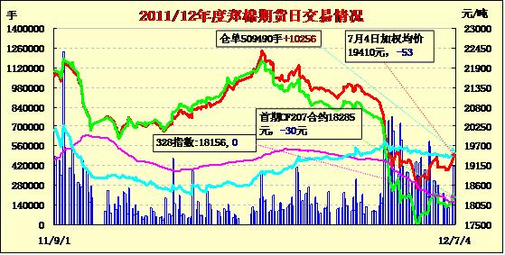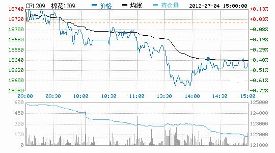 7月4日,鄭棉主要合約高開,早盤在空頭賣盤打壓下震蕩走低,午后觸及日低后在多頭買盤支撐下反彈,日線形成小陰線,日內(nèi)成交量萎縮,持倉量增加。CF1209合約日成交114608手,日減倉3150手,終盤持倉量121898手;CF1301合約日成交258748手,日增倉12580手,終盤持倉量300896手?;久媲闆r:內(nèi)地新疆棉的成交情況有所好轉(zhuǎn),但對價格的消化能力比較弱;河南部分地區(qū)成交略顯活躍,當(dāng)?shù)氐拿藜弿S采購地產(chǎn)棉較多,主要是以弱三級、弱四級棉花為主。下游方面,棉紗市場整體成交零散,雖散批量出貨于上周持平,但大批量交易較少。