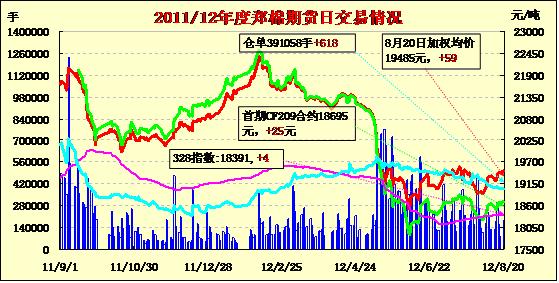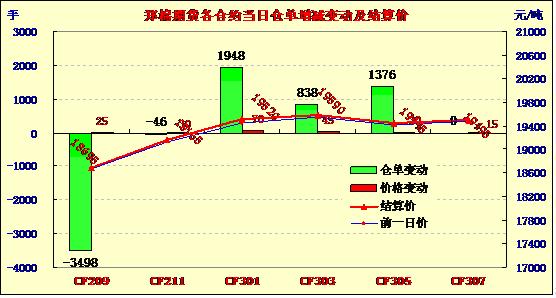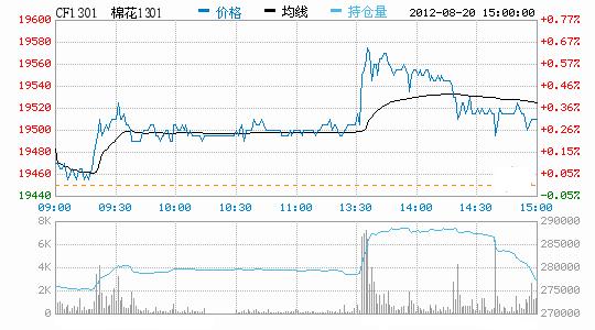 8月20日,鄭棉CF1301合約高開,早盤在多頭買盤推動(dòng)下走高,盤中窄幅整理,午后多頭集中買盤繼續(xù)推動(dòng)期價(jià)走高,尾盤在短線平倉(cāng)盤壓制下回落,日線形成1/2上影線的小陽(yáng)線,日內(nèi)成交量放大,持倉(cāng)量增加。CF1301合約日成交164708手,日增倉(cāng)1948手,終盤持倉(cāng)量277394手;CF1305合約日成交11110手,日增倉(cāng)1376手,終盤持倉(cāng)量86246手?;久媲闆r:年度末期,多數(shù)棉企雖然忙著檢修設(shè)備,準(zhǔn)備新年度的收購(gòu)加工工作,但心態(tài)仍以觀望為主,一是看看國(guó)家收儲(chǔ)的情況;二是看今年棉花大量上市后,棉農(nóng)的交售情況;所以開秤時(shí)間恐怕會(huì)略有推遲。部分棉農(nóng)對(duì)新花收購(gòu)價(jià)格不寄予高價(jià),因棉市弱勢(shì)難改;另有部分棉農(nóng)則認(rèn)為國(guó)家收儲(chǔ)政策會(huì)成為支撐棉企和棉農(nóng)的有力杠桿,因此信心較足。棉副方面,市場(chǎng)上棉副產(chǎn)品行情基本穩(wěn)定,棉籽僅剩少量收購(gòu),價(jià)格基本持平。下游方面,全棉紗走貨量雖好轉(zhuǎn),但下游紡紗廠家采購(gòu)批量不足。