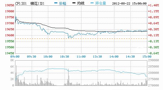 8月22日鄭棉期貨高開調(diào)整,增倉放量。CF1301合約高開,早盤在空頭賣盤打壓下走低,午間創(chuàng)日低后橫向盤整,午后在空頭回補(bǔ)支撐下反彈,日線形成高開小陰線,日內(nèi)成交量放大,持倉量增加。CF1301合約日成交158736手,日增倉3906手,終盤持倉量277604手;CF1305合約日成交15810手,日增倉92手,終盤持倉量85246手?;久媲闆r:距離用上新棉仍有近一個月時間,因此部分資金異常緊張的中小棉紡廠不得不報(bào)價采購新疆棉,試圖通過降低產(chǎn)能來渡過原料貨供應(yīng)緊張期。棉副方面,棉籽收購價仍較為堅(jiān)挺,棉油、粕行情基本持平,棉短絨弱勢維穩(wěn),棉殼延續(xù)強(qiáng)勢。下游方面,全棉紗行情平淡,零散成交尚可。