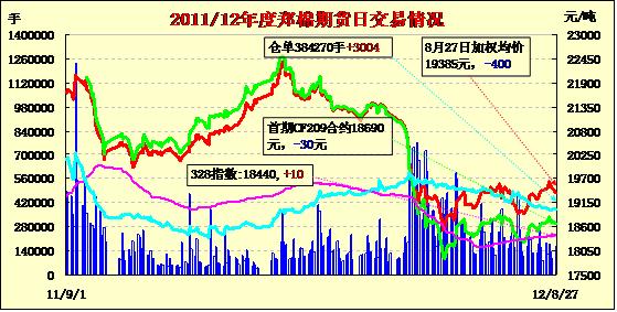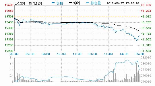 8月27日,鄭棉CF1301合約小幅低開,早盤橫盤整理,午后在空頭賣盤打壓下走低,尾盤反彈,日線形成陰線,日內(nèi)成交量萎縮,持倉量增加。CF1301合約日成交146298手,日增倉4694手,終盤持倉量278010手;CF1305合約日成交14270手,日減倉1088手,終盤持倉量85002手?;久媲闆r:近兩日全國大部棉區(qū)天氣良好,對棉花結(jié)鈴、吐絮較為有利,目前大部棉花長勢良好。據(jù)悉,目前多數(shù)大廠已經(jīng)準(zhǔn)備完畢,對新棉收購信心十足;但小廠信心明顯不足,表示視市場情況再決定是否收購加工,有的則表示只收購不加工,將籽棉賣給400型企業(yè)。棉副方面,棉油、粕近日漲價后稍有調(diào)整,棉短絨價格穩(wěn)中有漲,棉殼高位稍有回落,各產(chǎn)品漲跌幅度均有限。