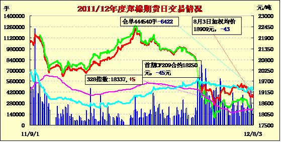 8月3日,鄭棉CF1301合約平開(kāi),早盤(pán)反彈后在多頭平倉(cāng)壓制下走低,隨后區(qū)間震蕩,日線形成小陰線,日內(nèi)成交量萎縮,持倉(cāng)量減少。CF1301合約日成交95664手,日減倉(cāng)5886手,終盤(pán)持倉(cāng)量305032手;CF1305合約日成交7432手,日增倉(cāng)892手,終盤(pán)持倉(cāng)量80252手?;久媲闆r:現(xiàn)貨價(jià)格略有下挫,部分存棉企業(yè)信心開(kāi)始動(dòng)搖,再加上還貸壓力,進(jìn)入8月份以后,棉企的壓力逐漸上升。另一方面,部分中小型紡織服裝行業(yè)也因資金問(wèn)題,經(jīng)營(yíng)景氣度持續(xù)不高,產(chǎn)銷(xiāo)量不如正常年份。棉副方面,市場(chǎng)上行情仍以穩(wěn)為主,棉籽貨源量已經(jīng)所剩無(wú)幾,絕大多數(shù)企業(yè)已經(jīng)停收。