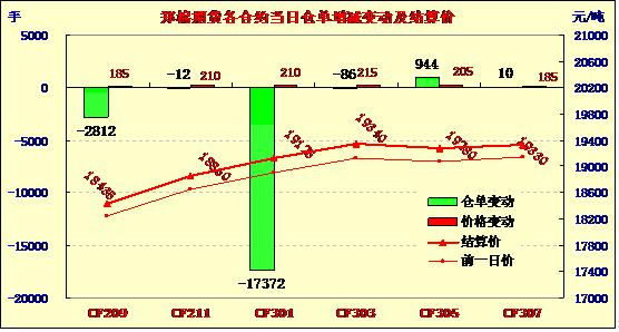 8月6日,鄭棉1301合約開盤報(bào)19100元/噸,收盤于19175元/噸,較前一交易日收漲260元/噸,漲幅為1.37%;成交量增至15.29萬(wàn)手,持倉(cāng)減少17372手至28.77萬(wàn)手。紐約期棉大幅收高,美國(guó)非農(nóng)就業(yè)數(shù)據(jù)好于預(yù)期帶動(dòng)投機(jī)性基金買盤。國(guó)內(nèi)棉花現(xiàn)貨價(jià)格小幅上漲,紡織廠謹(jǐn)慎購(gòu)貨,原材料以隨用隨買為主。市場(chǎng)傳言拋儲(chǔ)政策已確定數(shù)量接近百萬(wàn)噸,新陳棉價(jià)分達(dá)18500元和15000元/噸;發(fā)改委指出將提早制定儲(chǔ)備棉投放預(yù)案,合理確定銷售價(jià)格和投放方式。拋儲(chǔ)及進(jìn)口配額增發(fā)傳言困擾市場(chǎng),關(guān)注新年度收儲(chǔ)政策對(duì)新棉的支撐力度。