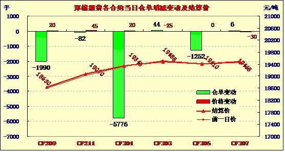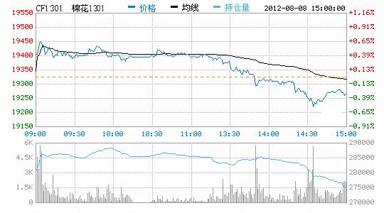 8月8日,鄭棉CF1301合約低開,早盤震蕩整理,午后在多頭平倉的壓制下走低,日線形成小陰線,日內(nèi)成交量變化不大,持倉量減少。CF1301合約日成交189078手,日減倉5776手,終盤持倉量275334手;CF1305合約日成交12806手,日減倉1252手,終盤持倉量83556手?;久媲闆r:北方大范圍較強降水導(dǎo)致山東、河北的部分棉區(qū)遭受遭害,棉株有倒伏現(xiàn)象,給棉農(nóng)造成一定的損失,但由于棉花后期的可修復(fù)性較強,若8-9月份天氣條件利好,棉農(nóng)積極投入田間管理,產(chǎn)量不會受到太大的影響?,F(xiàn)貨市場方面,皮棉成交仍不樂觀,部分地區(qū)購銷停滯。因為有國家收儲政策帶動,有部分棉企對后市保持樂觀。棉副方面,市場上棉油、粕行情表現(xiàn)仍較為堅挺;棉殼表現(xiàn)延續(xù)近期良好態(tài)勢;棉短絨行情仍無起色,需求清淡。下游方面,棉紗市場近期回暖氛圍延續(xù),多數(shù)紗廠出貨情況有好轉(zhuǎn),雖然目前訂單主要還是小單、散單偏多,但是紗廠心態(tài)已經(jīng)有所改善。