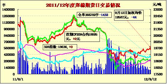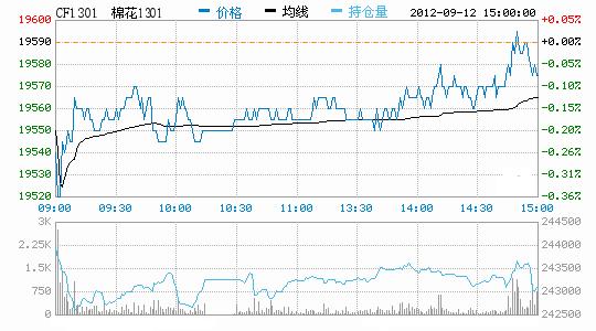 9月12日鄭棉期貨低開反彈,成交縮量。CF1301合約低開,盤中在多頭心買盤與空頭回補(bǔ)支撐下震蕩反彈,日線形成小陽(yáng)線星,日內(nèi)主力合約成交量萎縮,持倉(cāng)量減少。CF1301合約日成交45750手,日減倉(cāng)332手,終盤持倉(cāng)量243096手;CF1305合約日成交15176手,日減倉(cāng)1070手,終盤持倉(cāng)量108642手?;久媲闆r:國(guó)家收儲(chǔ)政策如期而至,400型棉企積極準(zhǔn)備。但部分棉企因資金、人員等問(wèn)題難以利用收儲(chǔ)平臺(tái),所以經(jīng)多方籌措,采取“聯(lián)合經(jīng)營(yíng)”方式,來(lái)做好籽棉收購(gòu)工作。棉副方面,因現(xiàn)貨油脂、粕類報(bào)價(jià)全面下跌,使得棉油、粕行情受到影響;棉短絨行情延續(xù)弱勢(shì);棉殼高位受阻,表現(xiàn)下滑;新籽上市量依然不大。