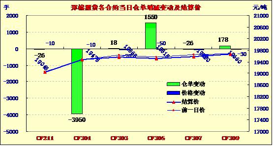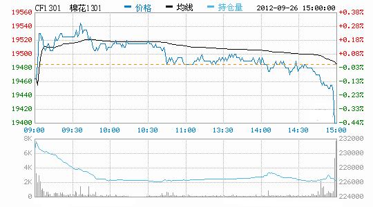 9月26日,鄭棉CF1301合約低開,早盤在空頭回補(bǔ)推動下反彈,隨后多頭平倉壓制期價回落盤整,尾盤放量重挫,日線形成陰星,日內(nèi)主力合約成交量放大,持倉量減少。CF1301合約日成交66286手,日減倉3950手,終盤持倉量226374手;CF1305合約日成交17644手,日增倉1550手,終盤持倉量111476手?;久媲闆r:近期全國大部棉區(qū)天氣良好,有利于棉花的正常吐絮及棉區(qū)的交收,但隨著冷空氣東移,今日華北、黃淮等地區(qū)出現(xiàn)降雨,黃淮江淮出現(xiàn)大霧天氣,影響了籽棉收購及運(yùn)輸活動,部分地區(qū)甚至有些企業(yè)暫停收購。今日三級籽棉平均收購價格4.30元/斤;四級籽棉4.24元/斤。棉副方面,市場上棉副產(chǎn)品行情仍以弱勢為主,需求減弱,但外圍市場豆類產(chǎn)品走勢有所好轉(zhuǎn),對棉油、粕行情有一定支撐作用,棉籽收購放緩,價格仍調(diào)低為主。