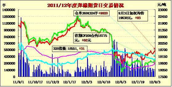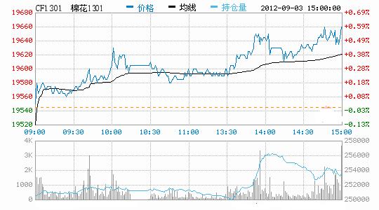 9月3日鄭棉增量收陽,震蕩上行。CF1301合約小幅低開,早盤在多頭買盤和空頭回補(bǔ)推動(dòng)下上行,午后多頭增量助推期價(jià)上漲,終盤收于日高,日線形成陽線,日內(nèi)主力合約成交量放大,持倉量增加。CF1301合約日成交117848手,日增倉3908手,終盤持倉量253568手;CF1305合約日成交30112手,日增倉6586手,終盤持倉量97688手?;久媲闆r:雖然各地區(qū)有零星收購跡象,但400型大廠開秤仍有些猶豫,一方面是由于現(xiàn)貨市場仍然弱勢,加工成本較高,難以保證有利潤;另一方面仍是前期籽棉質(zhì)量較差,企業(yè)不好接受,所以400型企業(yè)等待交儲(chǔ)開啟,來保證一定利潤。棉副方面,棉副產(chǎn)品普遍保持良好態(tài)勢,棉油、粕以及棉短絨價(jià)格均有小幅上調(diào),棉殼高位稍有調(diào)整。