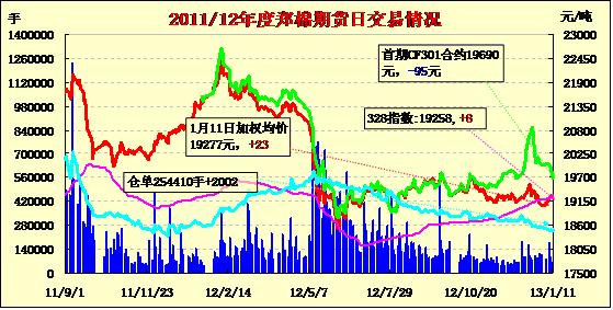 1月11日,鄭棉CF1305合約高開,早盤增倉上試后回落,午后重心上移,日線形成1/2下影線的陽線,日內(nèi)成交量放大,持倉量增加。CF1301合約日成交898手,日減倉34手,終盤持倉量8002手;CF1305合約日成交52356手,日增倉2322手,終盤持倉量175382手。基本面情況:由于今年收購加工交儲速度較快,部分地區(qū)籽棉交售速度較去年快三成左右,但受資源逐漸減少的影響,個別資金緊張的棉花企業(yè)已經(jīng)無力可圖,因此暫時停止了籽棉收購工作。紡織企業(yè)仍然關(guān)注儲備棉投放政策,由于下游成交依舊清淡,部分紡企表示競拍國儲棉也將視自身經(jīng)營情況適時競拍。棉副方面,棉油、粕需求較為低迷,價格弱勢調(diào)整;棉短絨、棉殼近期受到下游產(chǎn)品轉(zhuǎn)暖提振,行情看漲;棉籽價格依然易漲難跌。