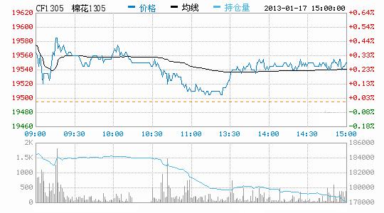 1月17日,鄭棉CF1305合約高開,早盤上沖后在平倉盤壓制下走低,午后在空頭回補作用下反彈盤整,日線形成陰線星,日內(nèi)成交量萎縮,持倉量減少。CF1305合約日成交49564手,日減倉5992手,終盤持倉量178110手;CF1309合約日成交9418手,日減倉326手,終盤持倉量69966手。近期CF1301合約收于19400元,較昨日下挫375元,日成交1352手,日減倉5628手,終盤持倉量清空,交割價由20300元/噸跌至目前的19820元?;久媲闆r:儲備棉投放已經(jīng)持續(xù)兩日,受紡織企業(yè)普遍缺乏資源及春節(jié)前想備貨的搶購心態(tài)影響,市場反響較熱烈,多數(shù)企業(yè)積極參與。但仍有一部分小型紡企不進(jìn)行拍儲,主要少量采購現(xiàn)貨市場進(jìn)口棉、小包地產(chǎn)棉,隨用隨買。
