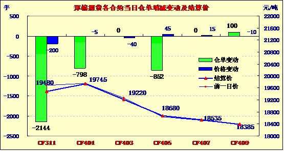 11月14日,鄭棉CF1405合約平開,早盤橫向震蕩,隨后在空頭回補支撐下走高,日線形成小陽線,日內(nèi)成交量放大,持倉量減少。CF1401合約日成交1948手,日減倉798手,終盤持倉量30884手;CF1405合約日成交12804手,日減倉852手,終盤持倉量49454手?;久媲闆r:棉花市場維持調(diào)整走勢,整體成交相對不多,目前各地的籽棉采摘進入尾聲。全棉紗仍維持清淡,企業(yè)庫存高企,資金相對緊張,對后市仍較為擔憂。