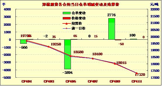 11月21日,鄭棉CF1405合約平開,早盤調(diào)整后受空頭回補支撐下走高,日線形成陽線,日內(nèi)成交量萎縮,持倉量減少。CF1401合約日成交2386手,日減倉566手,終盤持倉量23566手;CF1405合約日成交22126手,日減倉3894手,終盤持倉量65122手?;久媲闆r:由于近期市場仍無拋儲相對的確切消息,部分企業(yè)基于庫存,開始考慮購買少量地產(chǎn)棉,另外港口現(xiàn)貨也在企業(yè)的考慮范圍內(nèi)。