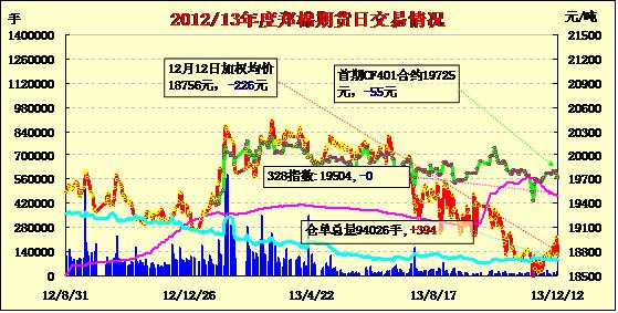 12月12日,鄭棉CF1405合約高開(kāi),午前一度在集中平倉(cāng)盤打壓下走低,隨后在多頭買盤與空頭回補(bǔ)支撐下回穩(wěn),日線形成長(zhǎng)下影線的陰線,日內(nèi)成交量放大,持倉(cāng)量增加。CF1405合約日成交20370手,日增倉(cāng)690手,終盤持倉(cāng)量70306手;CF1409合約日成交3578手,日減倉(cāng)250手,終盤持倉(cāng)量12164手。基本面情況:全棉紗仍舊弱勢(shì)難改,成交低迷。皮棉市場(chǎng)成交處于停滯,主要是因?yàn)槠髽I(yè)難以接受當(dāng)前的價(jià)格,更為傾向一些便宜的進(jìn)口棉。港口成交一般,預(yù)計(jì)后續(xù)印度到港量將逐漸增加,其中主要為企業(yè)前期的訂單。