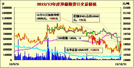 12月31日,鄭棉CF1405合約高開,早盤盤中區(qū)間震蕩,午后在多頭增倉買盤推動下走高,日線形成高開陽線,日內(nèi)成交量變化不大,持倉量增加。CF1405合約日成交55936手,日增倉10296手,終盤持倉量73520手;CF1409合約日成交11146手,日增倉136手,終盤持倉量24724手。基本面情況:上周印度新花繼續(xù)到港,大部分仍直接通關,少部分流入保稅倉庫。據(jù)青島一大型倉庫反映,該庫印度新棉入庫量約3000噸,遠低于往年,預計1月份入庫量將大幅增加。26、27號到港的棉花目前正在緊急通關。據(jù)本網(wǎng)調(diào)查至12月29日,張家港保稅區(qū)外棉庫存約28082噸,較前一周增2562噸。其中烏茲別克棉占到1/3,其次是烏克蘭棉、印度棉、美棉及津巴布韋的棉花。