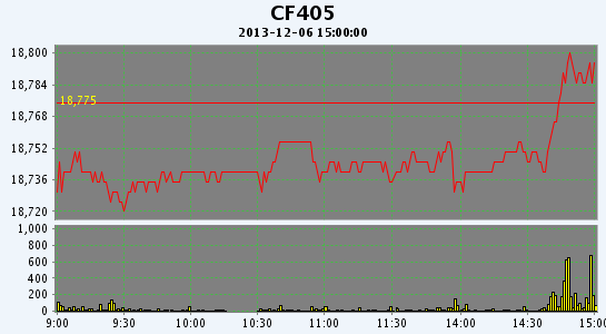 12月6日,鄭棉CF1405合約高開,盤中橫向整理,尾盤在多頭集中買盤推動下上揚,日線形成1/2小影線的小陽線,日內成交量萎縮,持倉量增加。CF1401合約日成交518手,日減倉416手,終盤持倉量8402手;CF1405合約日成交7450手,日增倉966手,終盤持倉量69164手。