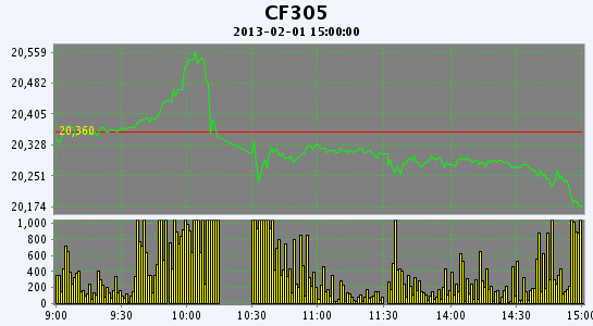 主力CF305合約當日交易走勢圖