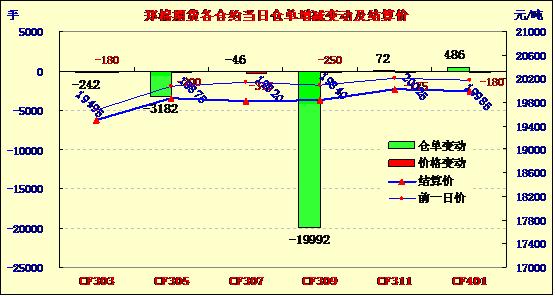 2月21日,鄭棉主要合約小幅低開,盤中在多頭平倉壓制下走低,午后空頭回補(bǔ)支撐期價(jià)反彈,日線形成1/2下影線的陰線,日內(nèi)成交量變化不大,持倉量減少。CF1305合約日成交11524手,日減倉3182手,終盤持倉量37596手;CF1309合約日成交162064手,日減倉19992手,終盤持倉量146836手?;久媲闆r:隨著部分地區(qū)棉企的零星復(fù)工,市面上已有少量皮棉產(chǎn)出,但現(xiàn)貨方面仍鮮有成交,仍以交儲(chǔ)為第一目標(biāo)。棉副方面,棉籽價(jià)格依然堅(jiān)挺;棉油、粕穩(wěn)中略跌;棉短絨繼續(xù)反彈;棉殼穩(wěn)定。下游方面,棉紡市場(chǎng)陸續(xù)恢復(fù),紗線價(jià)格保持,但市場(chǎng)交易批量沒有明顯拓展。