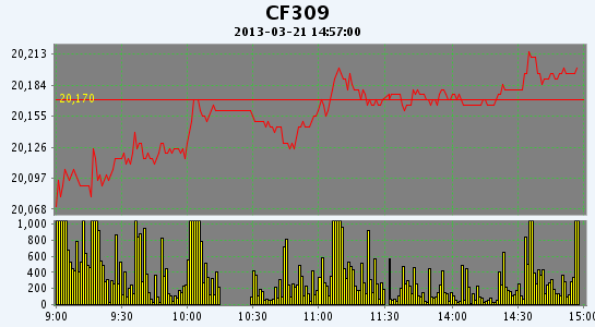 主力CF309合約當日交易走勢圖