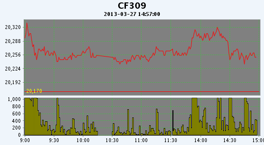 主力CF309合約當日交易走勢圖