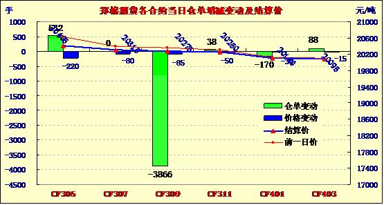 鄭棉期貨反彈回落減倉收低(4-12)