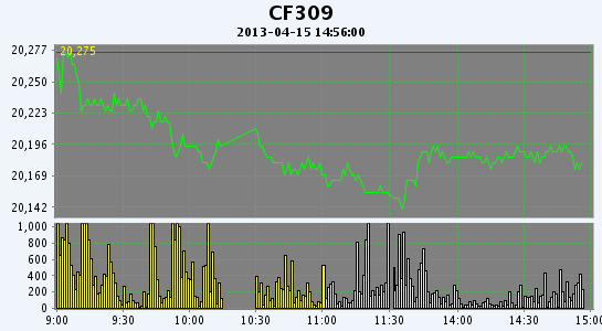 4月15日,鄭棉主要合約小幅低開,早盤后彈后在空頭賣盤壓制下盤跌,午后反彈整理,日線形成陰線,日內(nèi)成交量放大,持倉量小幅增加。CF1309合約日成交71592手,日減倉984手,終盤持倉量123302手;CF1401合約日成交9476手,日增倉2094手,終盤持倉量34090手?;久媲闆r:國內(nèi)棉花現(xiàn)貨市場整體成交清淡,價格平穩(wěn)。 2013年將繼續(xù)實施敞開無限量收儲,這突出顯示了政府支農(nóng)的決心。2013年中央一號文件指出,穩(wěn)定發(fā)展農(nóng)業(yè)生產(chǎn),支持優(yōu)勢產(chǎn)區(qū)棉花、生產(chǎn)。對于完善農(nóng)產(chǎn)品市場調(diào)控,充分發(fā)揮價格對農(nóng)業(yè)生產(chǎn)和農(nóng)民增收的激勵作用。不少棉區(qū)棉農(nóng)反應(yīng),政策出臺主要給大家吃了定心丸。對于繼續(xù)種植棉花進(jìn)一步明確方向。