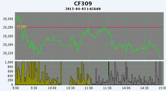 主力CF309合約當(dāng)日交易走勢(shì)圖