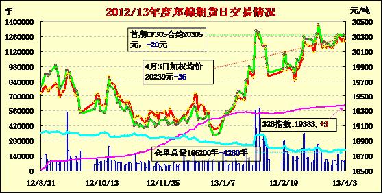 4月3日,鄭棉主要合約高開(kāi),早盤在空頭賣盤壓制下回落,隨后區(qū)間震蕩,尾盤在平倉(cāng)盤打壓下收低,日線形成小陰線,日內(nèi)成交量變化不大,持倉(cāng)量減少。CF1309合約日成交88396手,日減倉(cāng)3856手,終盤持倉(cāng)量149822手;CF1401合約日成交4324手,日減倉(cāng)176手,終盤持倉(cāng)量32426手。 基本面情況:位于北疆博爾塔拉的新疆生產(chǎn)建設(shè)兵團(tuán)第五師八十九團(tuán)十連的一塊農(nóng)田里,棉農(nóng)們正在忙著播種棉花,呈現(xiàn)出一派繁忙景象。而內(nèi)地各棉區(qū)也進(jìn)入春播階段,當(dāng)前棉農(nóng)紛紛開(kāi)始備播工作,施底肥,耕地,灌溉等工作,等氣溫穩(wěn)定之后適時(shí)進(jìn)行播種工作,按照平常年份當(dāng)?shù)匾话阍?月中下旬谷雨過(guò)后完成棉花的播種工作。今年棉農(nóng)反映農(nóng)資成本進(jìn)一步上漲,農(nóng)村土地租地流轉(zhuǎn)等費(fèi)用也在上漲。因此,不少地區(qū)棉農(nóng)對(duì)于今年是否繼續(xù)種植棉花也存在猶豫。目前市場(chǎng)普遍關(guān)注國(guó)家政策的出臺(tái):一是新年度收儲(chǔ)政策的出臺(tái),由于今年國(guó)家標(biāo)準(zhǔn)面臨新的改革,棉花企業(yè)比往年更加關(guān)注新收儲(chǔ)政策的出臺(tái),按照新標(biāo)準(zhǔn)實(shí)施收儲(chǔ)政策,棉企表示將派人認(rèn)真學(xué)習(xí)新國(guó)標(biāo),以保證新年度收購(gòu)工作順利進(jìn)行;二是4月份何時(shí)拋儲(chǔ)新棉,目前紡織企業(yè)繼續(xù)從國(guó)儲(chǔ)棉市場(chǎng)采購(gòu)原材料,但是拋儲(chǔ)資源尚無(wú)變化,紡織企業(yè)期待高等級(jí)皮棉上市;三是配額的發(fā)放,隨著第一批拋儲(chǔ)搭送配額的發(fā)放,紡織企業(yè)繼續(xù)積極從國(guó)儲(chǔ)棉市場(chǎng)進(jìn)行競(jìng)拍,希望得到相應(yīng)的配額。
