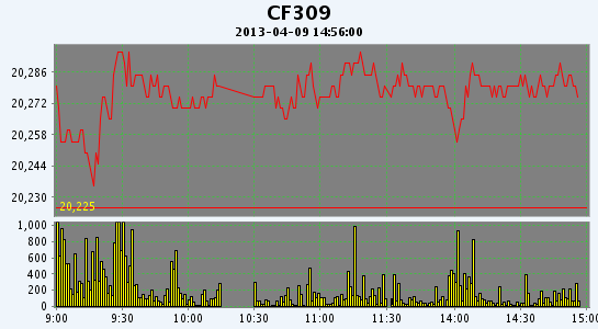 主力CF309合約當日交易走勢圖