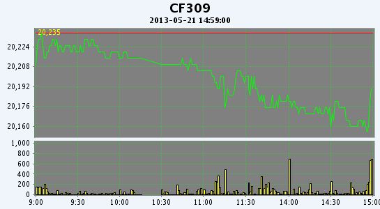 主力CF309合約當日交易走勢圖
