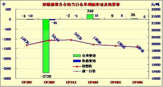 5月21日,鄭棉主要合約平開,盤中在多頭平倉盤壓制下走低,尾盤受到空頭回補推動迅速反抽,日內(nèi)成交量萎縮,持倉量近減遠增。CF1309合約日成交13210手,日減倉2720手,終盤持倉量72766手;CF1401合約日成交3496手,日增倉240手,終盤持倉量44984手?;久媲闆r:全國大部棉區(qū)天氣良好,適宜棉田工作。據(jù)悉,安徽地區(qū)需要等油菜收割結(jié)束,再進行棉苗移栽;江蘇部分棉農(nóng)已經(jīng)開始移栽,但等大部移栽還得等麥收結(jié)束;山東部分地區(qū)棉農(nóng)則正忙于定苗、補苗。 棉副方面,各產(chǎn)品整體保持穩(wěn)定,棉籽貨源雖然稀少,國內(nèi)油廠對進口棉子積極性不高,主要是因為進口棉籽弊端較多。
