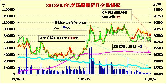 6月5日,鄭棉CF1401合約高開,早盤在空頭增倉壓制下調(diào)整,午后反彈,日線形成高開小陰線,日內(nèi)遠月成交量萎縮,持倉量近減遠增。CF1309合約日成交5332手,日減倉664手,終盤持倉量59774手;CF1401合約日成交10040手,日增倉1084手,終盤持倉量50130手?;久媲闆r:國內(nèi)棉花現(xiàn)貨市場整體成交清淡,價格平穩(wěn)。多數(shù)涉棉企業(yè)高度關(guān)注6月6日--7日每兩年組織一次的國際棉花會議,屆時將對全球、中國棉花及紡織形勢進行分析與展望。2013年國家棉花會議的主題是:“信心 轉(zhuǎn)型 共贏”,與會代表將就國內(nèi)棉花及紡織形勢、棉業(yè)可持續(xù)發(fā)展問題進行深入探索。過去的一年度棉花經(jīng)營以及紡織企業(yè)經(jīng)營均比較困難,棉花企業(yè)依賴國家收儲,但也有部分棉花企業(yè)處于虧損狀態(tài);紡織企業(yè)下游消費依舊疲軟,低檔棉紗需求清淡,高檔棉紗走貨一般,多數(shù)企業(yè)非常關(guān)注此次國家棉花會議的召開,期待能夠從中得到指導。