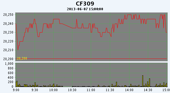6月7日,鄭棉CF1401合約高開,盤中橫向整理,尾盤收強(qiáng),日線形成長陽線,日內(nèi)成交量萎縮大,持倉量變化不大。CF1309合約日成交6722手,日減倉1802手,終盤持倉量56158手;CF1401合約日成交5958手,日增倉80手,終盤持倉量50072手。基本面情況:國內(nèi)棉花現(xiàn)貨市場成交清淡,報價小幅調(diào)低,整體呈現(xiàn)低迷狀態(tài)。2013中國國際棉花會議在美麗的海濱城市青島市隆重開幕。論壇由中國棉花協(xié)會、全國棉花交易市場和農(nóng)業(yè)部農(nóng)村經(jīng)濟(jì)研究中心主辦,自1999年起每兩年舉辦一次,今年是第8屆,本屆的主題為“信心、轉(zhuǎn)型、共贏”。 來自17個國家和地區(qū)的近千名代表歡聚美麗的青島,共商中國和國際棉花事業(yè)。國內(nèi)外涉棉企業(yè)高度重視此次會議。