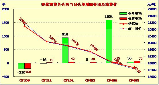 8月19日,鄭棉CF1401合約高開,盤中震蕩增倉(cāng),尾盤在多頭平倉(cāng)壓制下回落,日線形成高開陰線,日內(nèi)成交量萎縮,持倉(cāng)量增加。CF1401合約日成交14606手,日增倉(cāng)950手,終盤持倉(cāng)量71148手;CF1405合約日成交10326手,日增倉(cāng)1064手,終盤持倉(cāng)量43624手?;久媲闆r:國(guó)內(nèi)棉花現(xiàn)貨市場(chǎng)成交清淡,報(bào)價(jià)小幅調(diào)低,繼續(xù)呈現(xiàn)低迷狀態(tài)。當(dāng)前棉花企業(yè)主要關(guān)注新棉長(zhǎng)勢(shì),并且積極籌備新花收購(gòu)資金,為今年交儲(chǔ)做準(zhǔn)備。不少棉花企業(yè)今年把目標(biāo)投向新疆,到新疆收購(gòu)意愿較強(qiáng),預(yù)計(jì)今年新疆資源爭(zhēng)搶將會(huì)激烈。目前紡廠多數(shù)是停產(chǎn),限電、高溫等因素給工人放假。主要原因是紡廠的棉紗賣掉沒有現(xiàn)款回籠,多數(shù)是做的多,虧損面越大。隨著紡織行情普遍較差,關(guān)停的企業(yè)增多,不少企業(yè)認(rèn)為今年紡織的需求量將進(jìn)一步縮減。