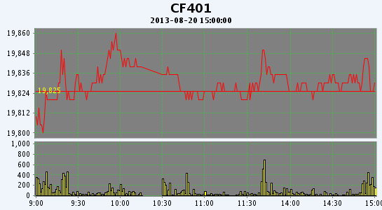 8月20日,鄭棉CF1401合約高開,盤中在空頭回補(bǔ)與多頭買盤支撐下回升盤整,日線形成陽線星,日內(nèi)成交量放大,持倉量減少。CF1401合約日成交17732手,日減倉1518手,終盤持倉量69630手;CF1405合約日成交4592手,日減倉1254手,終盤持倉量42370手。基本面情況:安徽池州的天氣仍以高溫烈陽為主,最高溫度仍維持在38攝氏度以上,棉田缺水嚴(yán)重,對棉花生長產(chǎn)生威脅。不過,據(jù)氣象預(yù)測,19-20日,當(dāng)?shù)貙?huì)迎來2天的雷陣雨天氣,最高氣溫也下降至35攝氏度,屆時(shí)持續(xù)多日的棉田旱情得到緩解,對棉花結(jié)鈴成桃非常有利。