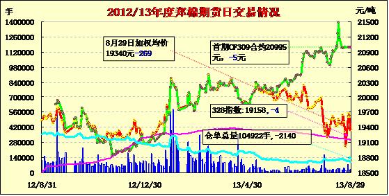 鄭棉期貨沖高回落減倉(cāng)收跌(8-29)
