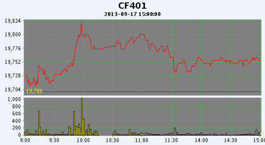 9月17日,鄭棉CF1401合約低開,早盤在空頭回補推動下沖高,午后受平倉盤壓制下滑,日線形成長上影線的陽線,日內(nèi)成交量放大,持倉量減少。CF1401合約日成交11698手,日減倉1742手,終盤持倉量57068手;CF1405合約日成交5886手,日增倉144手,終盤持倉量37968手。基本面情況:國內(nèi)棉花現(xiàn)貨市場成交清淡,報價小幅上漲。隨著臨時收儲預(yù)案啟動,棉花價格回歸平穩(wěn)。當前新棉采摘量比較多,但多數(shù)企業(yè)收購謹慎,目前為初次送檢,檢驗結(jié)果關(guān)系收購進程以及籽棉質(zhì)量,不少企業(yè)在第一批送檢之后,檢驗結(jié)果比較滿意核算企業(yè)受益情況后才會大批量入市收購。但當前市場初期花,收購價格相對較高,因此還有不少企業(yè)打算觀望,待十一前后再入市。當前紡織市場依舊沒有起色,紡織成品價格下跌,原料采購乏力。