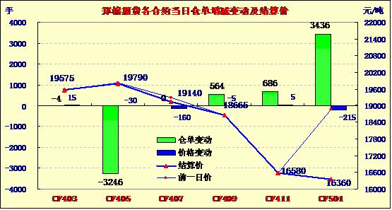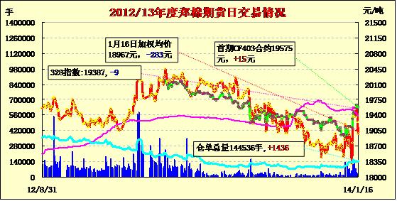 1月16日,鄭棉CF1405合約高開(kāi),早盤在多頭平倉(cāng)盤壓力下調(diào)整,隨后在空頭回補(bǔ)和逢低買盤推動(dòng)下回升,午后再度受到平倉(cāng)盤壓力回落,日線形成高開(kāi)陰線,日內(nèi)成交量萎縮,持倉(cāng)量減少。CF1405合約日成交24316手,日減倉(cāng)3246手,終盤持倉(cāng)量71256手;CF1409合約日成交2512手,日增倉(cāng)564手,終盤持倉(cāng)量31164手。基本面情況:港口美棉和澳棉因?yàn)橘Y源不多,價(jià)格上漲,需求不錯(cuò)。印度棉現(xiàn)貨價(jià)格穩(wěn)定,走貨一般;全棉紗行情仍舊弱勢(shì),市場(chǎng)走貨清淡,不少?gòu)S家提前放假。