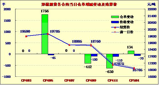 1月23日,鄭棉CF1405合約低開,早盤受多頭買盤推動(dòng)回升,午后在空頭賣盤壓制下回落,日線形成低開陰線星,日內(nèi)成交量變化不大,持倉(cāng)量增加。CF1405合約日成交18072手,日增倉(cāng)1756手,終盤持倉(cāng)量77336手;CF1409合約日成交1642手,日減倉(cāng)412手,終盤持倉(cāng)量24114手?;久媲闆r:目前港口較多的仍是印度棉,澳棉、美棉及巴西棉有報(bào)價(jià),但基本有價(jià)無市,近期港口印度現(xiàn)貨價(jià)格在18200元/噸左右,成交一般。